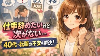 仕事仕事辞めたいけど次がない人へ|40代・転職回数が多くても詰まない現実と対処法 仕事を辞めたいけど次がないと悩んでいませんか?40代・転職回数が多い方でも転職に成功した体験談をもとに、辞めるリスクと現実的な対処法を解説。在職中に動くべき理由もわかります。 2026.04.11仕事悩み