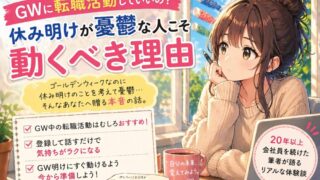 仕事GWに転職活動していいの?|休み明けが憂鬱な人こそ動くべき理由 ゴールデンウィークが始まった瞬間、憂鬱になったことはありませんか。 嬉しいはずなのに、頭の片隅に「休み明け... 2026.04.25仕事悩み
