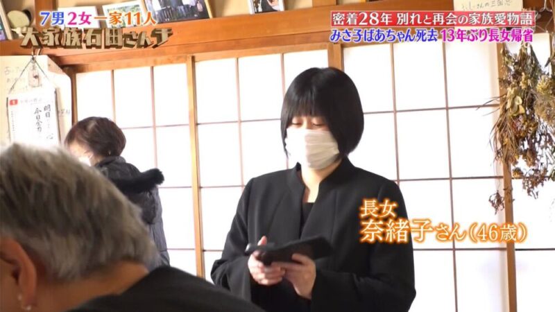 石田さんチの長女・奈緒子さんは、2025年12月3日の放送で13年ぶりに実家に帰郷しました。
