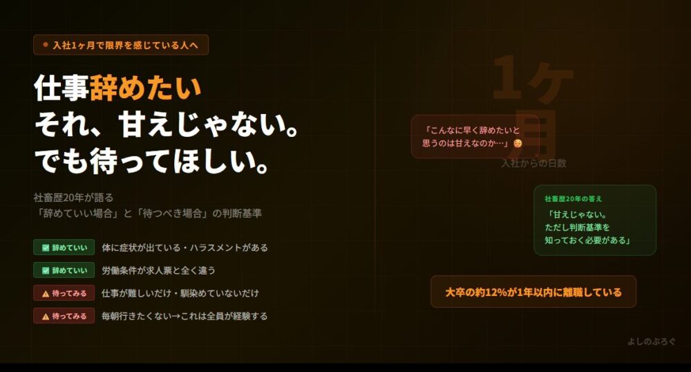 社畜歴20年のおれが正直に言う。「辞めていい場合」と「もう少し待つべき場合」は明確に違う。その判断基準をこの記事で全部話す。