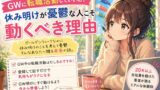 - 休日は「回復7:楽しむ3」のバランスが理想。無理に予定を詰め込まなくてOK
