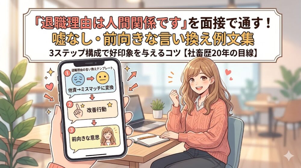 結論を先に言います。退職理由を「人間関係」とそのまま伝えるのはNGです。ただし、嘘をつく必要もありません。正直な気持ちを「前向きな言葉」に変換する技術を身につけるだけでいい。